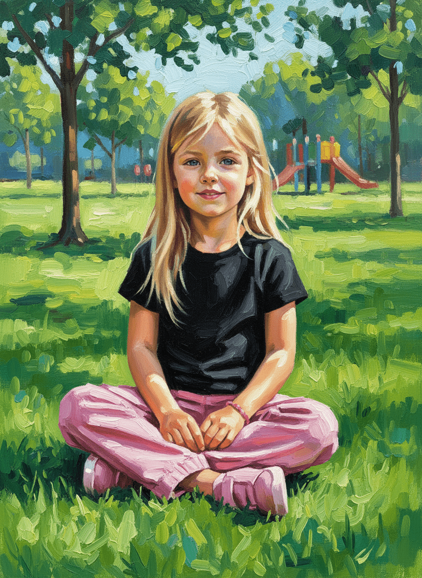 Maria is full of curiosity, movement, and playful ideas. She turns ordinary moments into bright adventures and always brings energy into the scene.